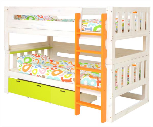 業務用可! G★SOLID【ホワイト】宮付き 2段ベッド ロング キャスター付 H101cm 梯子有 二段ベッド 二段ベット 2段ベット 子供用ベッド ベッド 大人用 木製 耐震仕様 頑丈 親子ベッド スライド 親子ベット